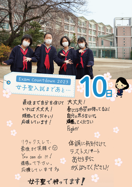 受験生の皆様へ!入試応援カウントダウン☆女子聖学院2023入試まであと10日となりました。 本日の...