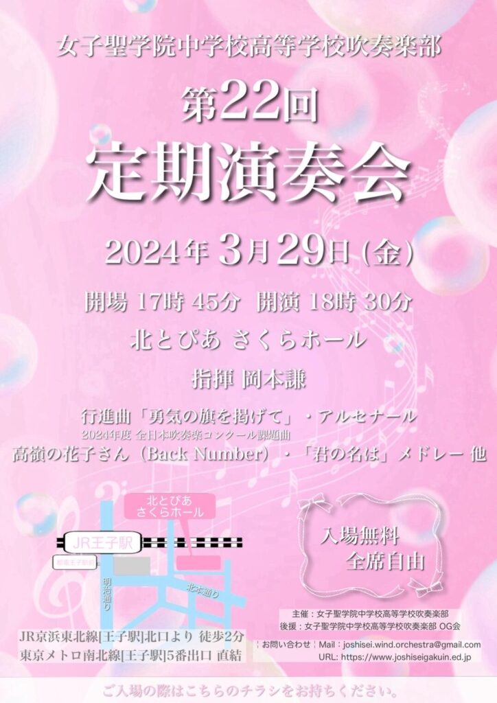 ★受験生のみなさまへ★ 吹奏楽部よりお知らせです。来る3月29日に「第22回定期演奏会」を開催いたします。 ●日程:...