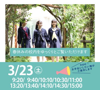 3月中に行われる女子聖学院の説明会のご案内です。 お申込みはこちら↓↓↓ 3月23日(...