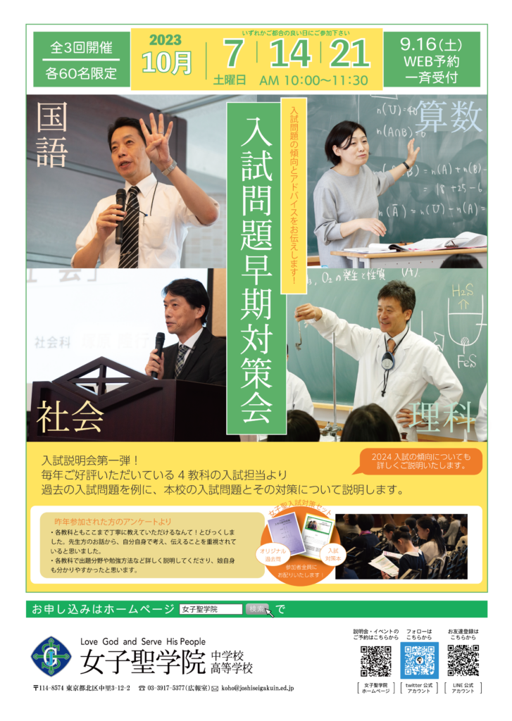 お申込みはこちら↓↓↓10/7(土)・14(土)・21(土)入試問題...