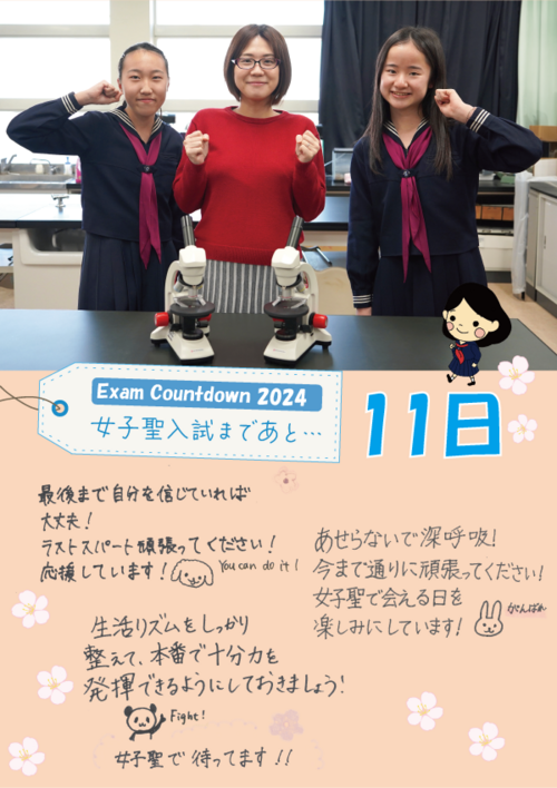 受験生の皆様へ!入試応援カウントダウン1/21(日) 女子聖学院2024入試まで、あと11日となり...