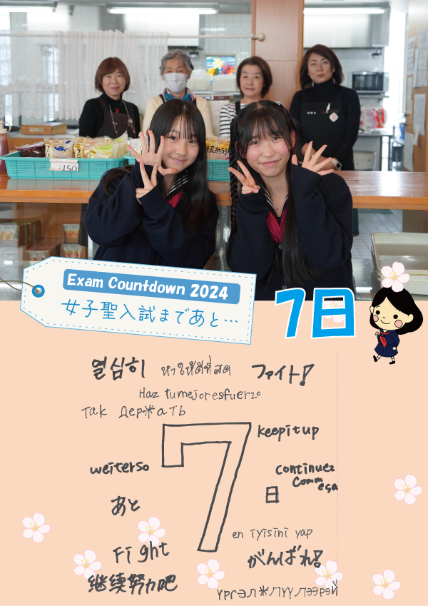 受験生の皆様へ!入試応援カウントダウン1/25(木) 女子聖学院2024入試まであと7日となりまし...