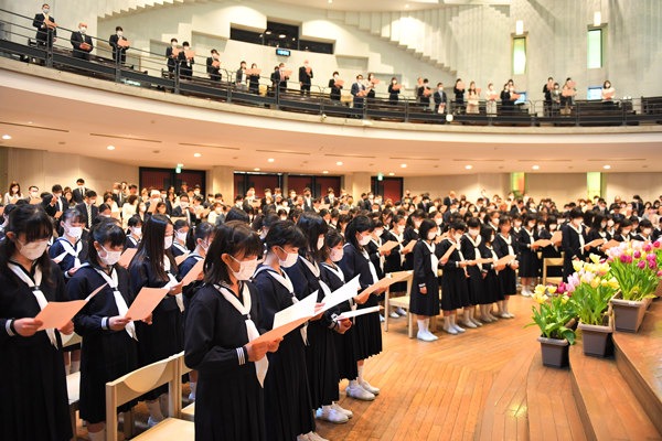 式典では、校長先生から「祈り」という題で式辞が述べられました。創立者であるバーサ・F・クローソン先生が、創立当時に抱いた不安や最初の生徒10名を迎えた時のお話を通じて、神様から与えられた使命について語られました。また、祈りを通じて新たな歩みを踏み出す勇気を与え、積極的な行動を促し、失敗を恐れずに挑戦することの大切さを伝えました。