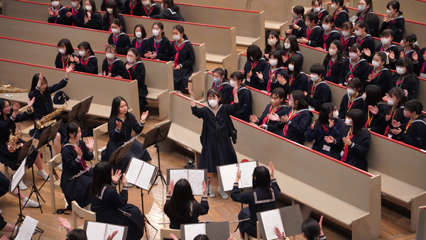 生徒会の生徒たちは、みんなで会場を盛り上げています。