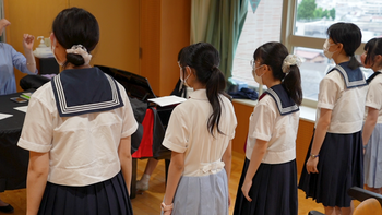 今日の女子聖ショートは、7月17日の『夏の女子聖体験日』に向けて、クラブ体験の練習をしているコーラス部です。コーラス部では「私は最強」を歌います。受験生のみなさんと楽しく歌って、ハーモニーを体感してもらいます。たくさんの方に来校していただけるのを、楽しみにしています。