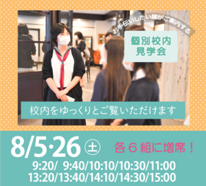 この度、ご要望にお応えし「夏休み!個別校内見学会」を追加開催することを決定いたしました!