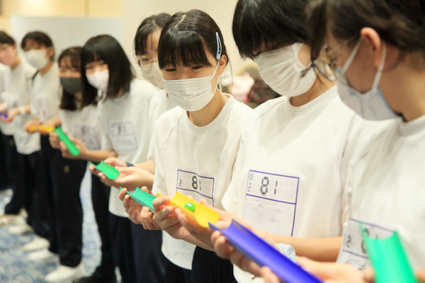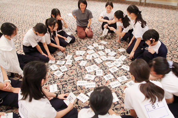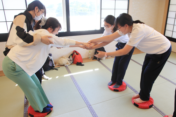 二日目は各クラスを2チームに分け、PAJのファシリテーターの皆さんのご指導のもと、プロジェクトアドベンチャーに取り組みました。「自ら一歩を踏み出す」「自分が思っていることを伝える」「他者が思っていることを受け取る」という三つの目標を、それぞれが協同して課題に取り組みながら、体験していきました。