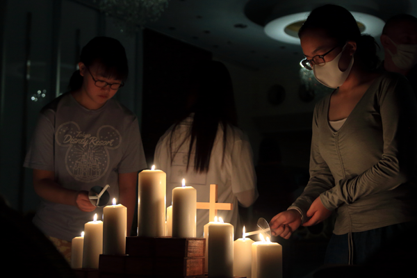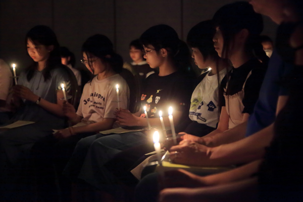 夜にはキャンドルサービスを実施しました。アドベンチャーキャンプではキャンドルサービスが一番印象的です。午前午後とずっと友達と関わり、意見を言い合ってきた後に、一斉にみんなのキャンドルが点火した時、81回生みんなの心が一つになったように感じとても感動しました。コロナ禍以降、久しぶりに本物のキャンドルに火を灯して、静かに御言葉に耳を傾けました。