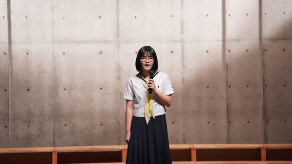 中学3年生は、みんなで歌える喜びを嚙み締めて、堂々と披露しており、胸に響くものがありました。また、指揮者が始まる前に、頬に指をあて"笑顔"とみんなに伝える様子も印象的でした。自由曲の選曲に関しても「担任の先生が好きな曲」や「聴いている人の心に虹がかかるように」と想いがこもっていました。