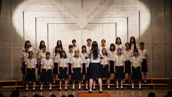 当日は中学1年生から中学3年生までの12クラスが会場のチャペルに集結。