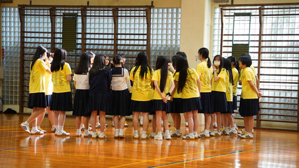 休憩をした後は、『じゃんけん列車』。ルールとしては、一対一でじゃんけんを行い、勝った人が列車の先頭になり、負けた人が後ろにつき、最終的に1本の電車になったら、先頭の人が勝ちというゲームです。久しぶりに行った生徒も多かったと思うので、初めは少し恥ずかしそうにしながらも、たくさんの笑顔が見られました。最後の一騎打ちでは、みんな全力。最後は1本の電車になって終了しました。制限されずに、全力で友人たちと楽しめる日々が多くなり、嬉しいです。