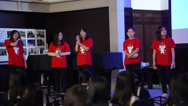 そして修学旅行のイメージが湧いたところで、先生たちの下見報告を聞きました。教員がみんなお揃いで着用しているのは、『つばきねこ』という長崎県五島列島のゆるキャラのTシャツです。