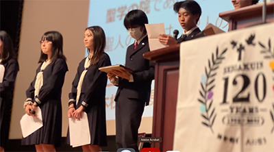 学校法人聖学院は今年での設立120周年を迎え、学校や駒込の街中で120周年のマークをよく見かけます。