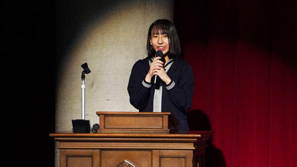 ベートーヴェンを含む2曲演奏後、音楽を専門とした高校ではなく、なぜ女子聖に入学したのか等のお話もしてくれました。