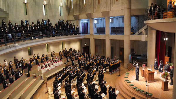 今年は4年ぶりに、従来通り中学・高校それぞれ全学年が集い、ハレルヤコーラスを賛美しクリスマスの訪れを祝福することができました。