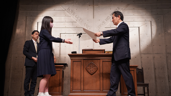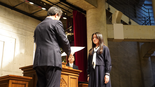 校長の式辞では、「君たちはどう生きるか」を題材にした話しがされ、女子聖学院は、本当の正しいことは何か?生きる意味は何か?を深く考えることを、生徒や教職員に問いかけている学校であること、1年の始まりである今は、そのことを考える良いチャンスであると語られました。