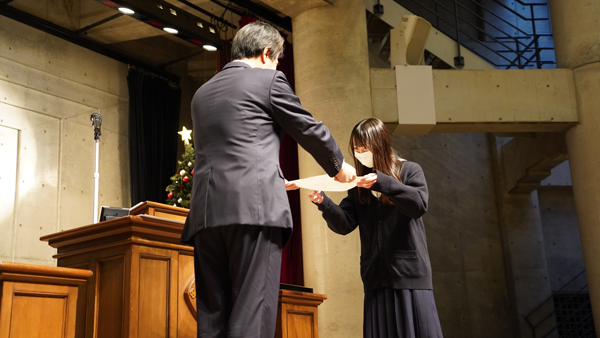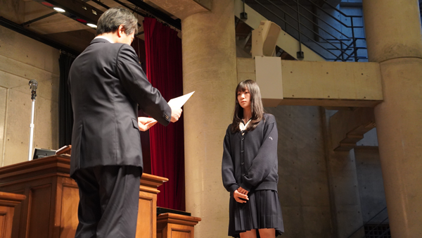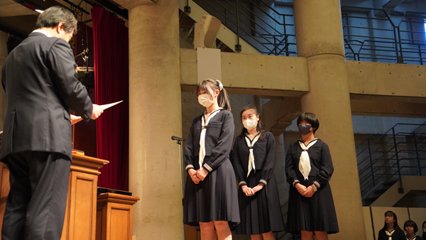 始業式の最後には、2学期にさまざまな分野で素晴らしい結果を収めた生徒の表彰が行われました。
