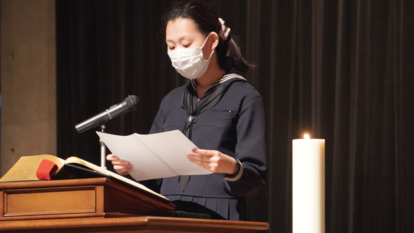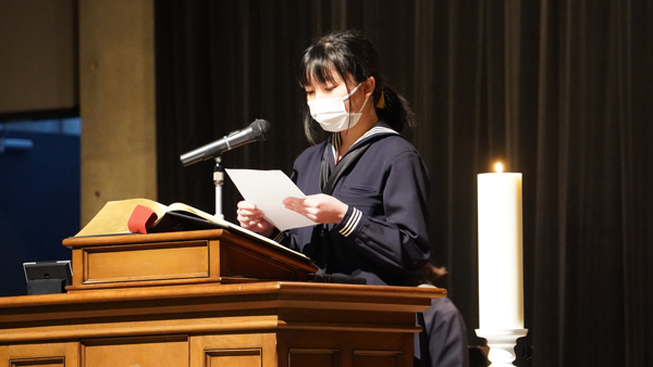 本日の高校チャペル礼拝は、副宗教委員長によるキャンドルの点火から始まりました。