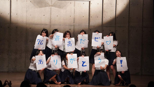 送別会では、部活の出し物、運動会の応援団や去年の先輩たちからのメッセージ等、76回生への感謝の思いを届けました。