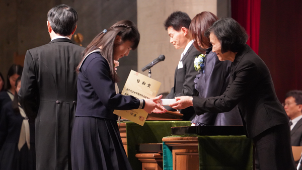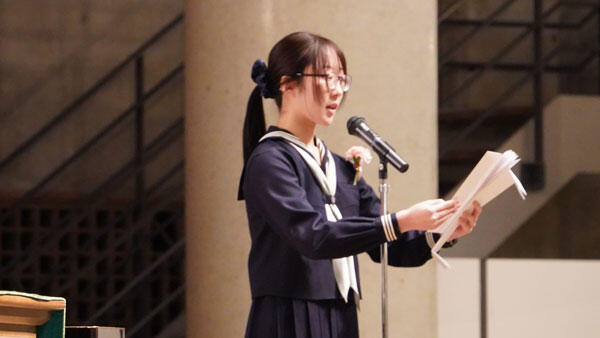 校長式辞では『キリストの香りを持ち、置かれた場所で咲きなさい』との言葉が贈られました。