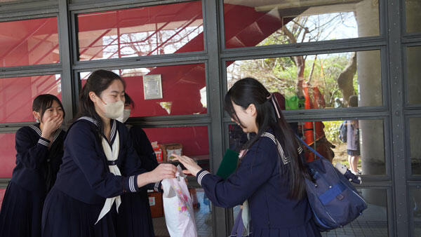 教室で最後のホームルームを行い、その後、お世話になった後輩が先輩のもとに来て、別れを惜しむ姿も見られました。
