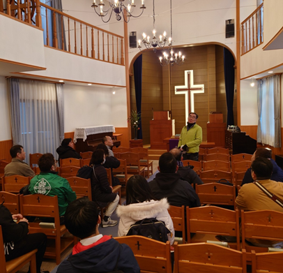 滝野川教会や根津教会、そしてシークレットにしていた最終目的地である東京池袋教会それぞれにおいて、各教会の紹介説明やキリスト教文化の解説があり、参加者全員が興味深く聞き入っていました。