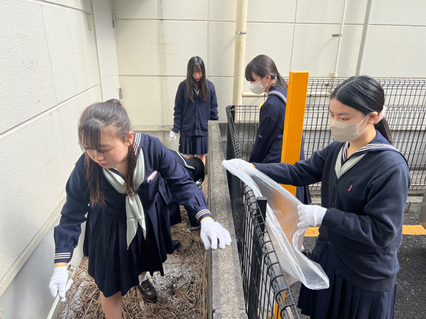 私は今回ecomameとして2回目、2年ぶりのゴミ拾いでした!一昨年と何か違うところはあるかなぁと考えても正直あまりなくて、人目のつかないところほどゴミが溜まっていたり、ゴミ拾いをして学校に帰って、そこからまたお家に帰るために通学路を通るまでの短時間で拾ったはずの場所にゴミがあったり、どれも2年前とおなじことで、正直2年間ecomameの活動をしたからと言って世の中が大きく変わるとかそんな簡単なことではないと痛感しました。でも、ゴミ拾い中に声をかけてくださる方もいるし、お礼を言ってくださる方もいて、本当にちょっとずつでも捨てる人と拾う人の意識の差を埋めていくためにも制服を着た私たちが街中を歩いてゴミ拾いをする姿には意味があるのかなと思います!後輩のみんなとの活動も初めてだったので、これからもっともっとecomameの活動が大きくなればいいなと思いました。(高Ⅲ S.S)