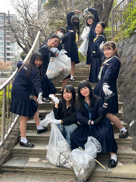 今回初めてゴミ拾いに参加しました。私は今まで記念祭の部屋やフードバンクなど、校内での活動しか行った事がなかったので、ゴミ拾いを通して身近な駒込の実態を知る事ができました!駐車場の角などは特にゴミが多く、「人目に付かないから捨ててもいいや」という考えの人がいる以上、ポイ捨ての問題は解決しないのだと痛感しました。また公園内の花壇にもプラスチックのゴミが多くあり、ショックを受けました。ゴミを拾い終わった道は、劇的な変化ではないけれど確実に綺麗になっていました。普段道を歩いているだけではあまり目に留まらない小さなタバコも、取り除けばこんなに綺麗になるのだと思いました。道中「お疲れ様、頑張ってね」と声を掛けてくださる方も多くいて、励みになりました。また機会があればゴミ拾いしたいです!海のゴミ拾いなども気になります。(高Ⅲ S.O)
