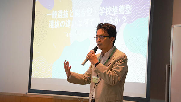 今年度もキックオフ講座として、大学が求めるアドミッションポリシーと自分が積み上げてきた学問を通じた課題解決への興味・関心を、どのように「ストーリー化」して志望理由書を作成していくかについての説明をしていただきました。
