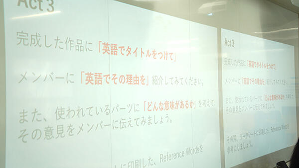 まず、教師がレゴ®シリアスプレイ®の説明を英語で行い、次に生徒たちがそれぞれの理想の老人ホームをレゴ®を使って表現しました。すべての説明や作品の共有は英語で行われ、生徒たちは教材に出てくる新しい英単語やフレーズを用いながらプレゼンテーションの準備をします。
