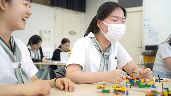「英語コミュニケーション」の授業で、ユニークなアプローチが取り入れられました。リーディング教材で「コロナ禍の老人ホーム」について学習するためのイントロダクションとして、「理想の老人ホーム」を題材にレゴ®シリアスプレイ®を使用した授業が行われました。