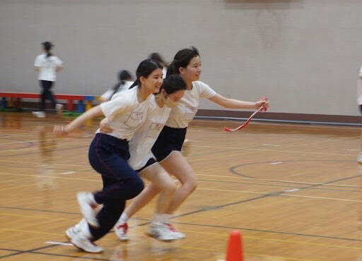 中2の障害物競争では、コーンとフラフープを中心に練習を行い、最後まで全力ダッシュを目標に高校生と一緒に練習しました!