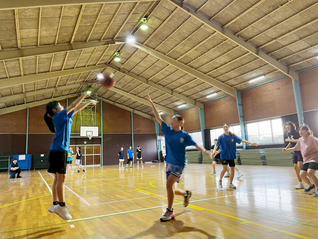 合宿では体力強化を基礎として、ドリブルやシュートなどの基本練習から、UCLAカット、シザーズ、ポストアップなどフォーメンションを基本とした実戦練習まで幅広くプレーをしました。最後には高校チームと中学チームで試合を行い、いつも以上に緊張感を持った姿勢が見られ、新しいプレースタイルやプレーマインドを身に着けた選手も多くいました。