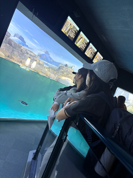 水族館の中ではペンギンや大きな水槽で元気に泳ぐ魚に癒され、みんな笑顔で写真を撮り、たくさんの思い出ができました。