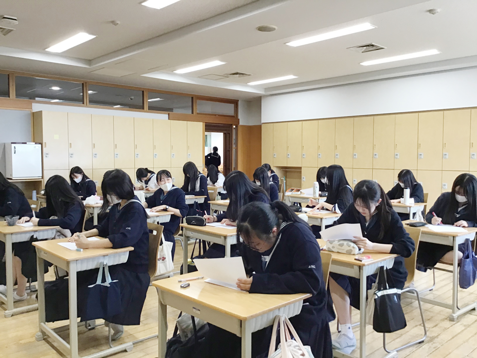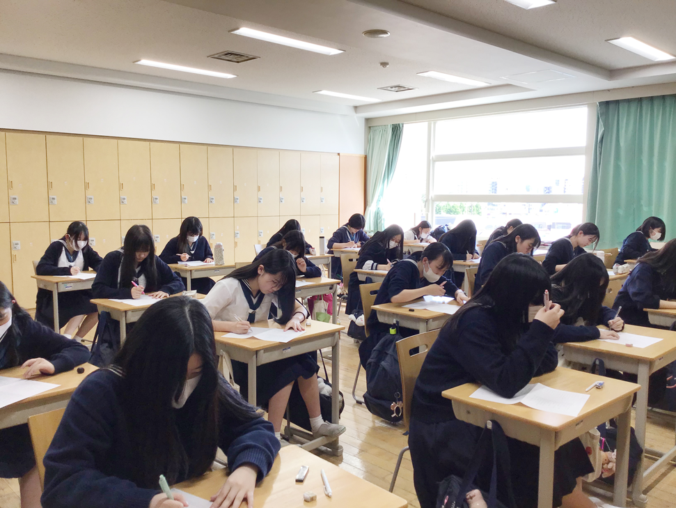 一昨日でついに100単語を超えました。今日はその100単語がどれだけ身についているか、学校で確認テストです。5分間の短いテストですが、生徒は真剣に取り組み、その後の採点では「できた」「できなかった」と互いに見せ合い盛り上がっていました。