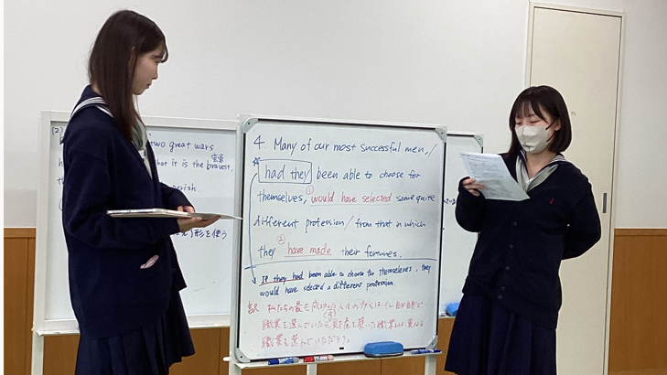 高校Ⅲ年生は、「高校探究ゼミ」のほか、「過去問ゼミ」を選択することもできます。過去問ゼミでは、過去問を「主体的な学び」の中で研究し、過去問研究を自走できる力を養うことを目的としています。