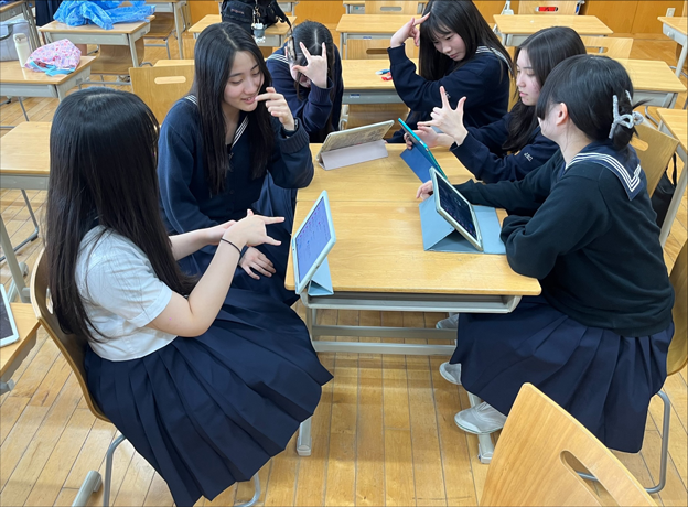 女子聖学院の運動会は高校生が学年ごとに色を持ち、中学生は縦割りとなり高校生が指導を行います。