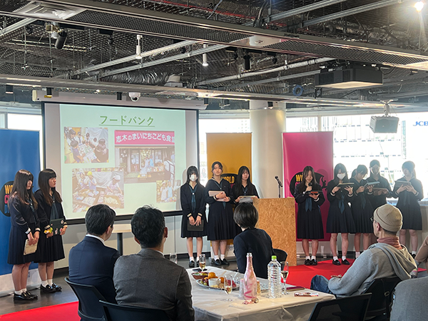 授賞式が終わった後に、みんなでフルーツやお菓子を食べる時間があり、そこの時間にも様々な交流が持てました。これからも一人一人でやることも大事だと思いますが、みんなで話し合って一致団結して企画を考え、実行することができたらなと思います!人生の思い出に残る出来事になりました。(高1R.T)