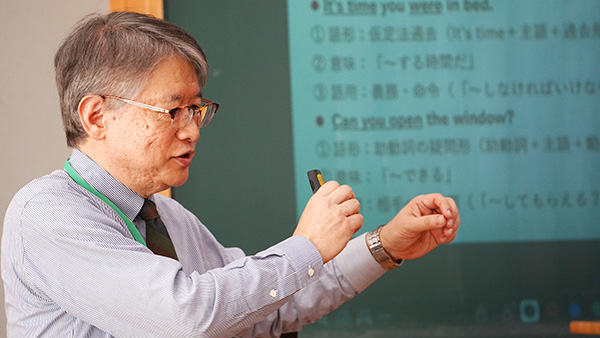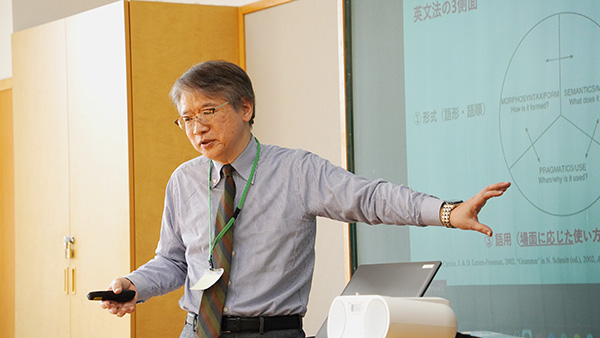 今回の特別授業では、上智大学副学長、文学部英文学科の池田真 教授にお越しいただき、「英文法の3側面と日常生活での活用」について学ぶ時間となりました。授業では、実際の音声を聞き取りながら、表現がどのような場面でどのように使われるのかを丁寧に確かめていきました。