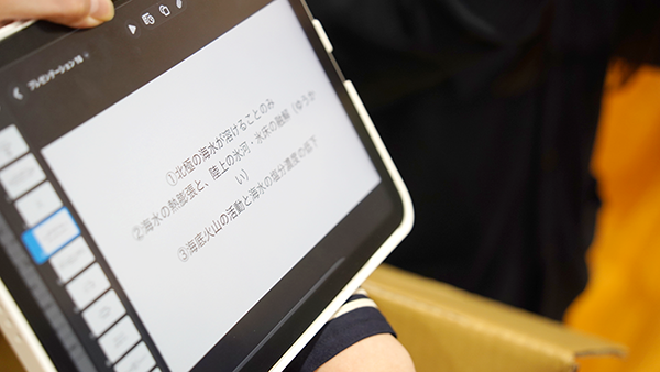 その後、1年間総合学習で行なってきた5つの活動について、活動報告チームがスライドと共に発表してくれました。