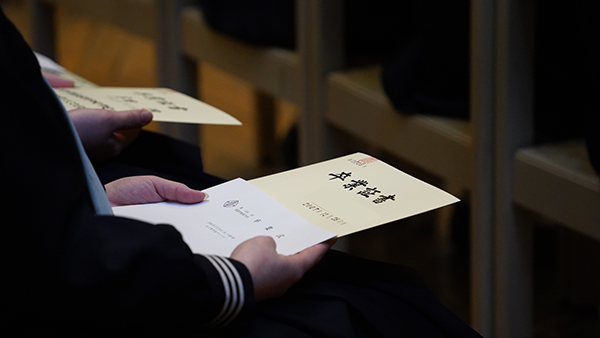 卒業生の皆さんのこれからの歩みが、希望に満ちたものとなりますように。そして神様の豊かな祝福が、これからの一歩一歩の上にありますようお祈りいたします。