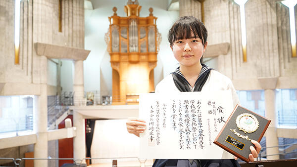 女子聖学院高等学校2年のY.Kさんが全国大会と総文祭で優秀な成績を収めました!凱旋した彼女にさっそ...