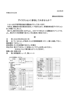 卒業生のみなさまへ「2023運動会」アトラクション参加者募集のお知らせ